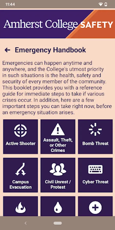 - Emergency Handbook: Campus emergency documentation that can prepare you for disasters or emergencies. This can be accessed even when users aren’t connected to Wi-Fi or cellular data.