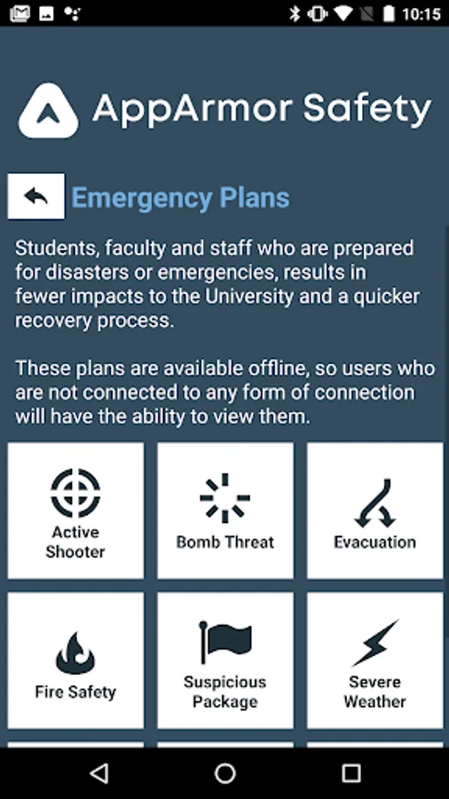 - Provide emergency resources such as offline ready emergency plans and Title IX information