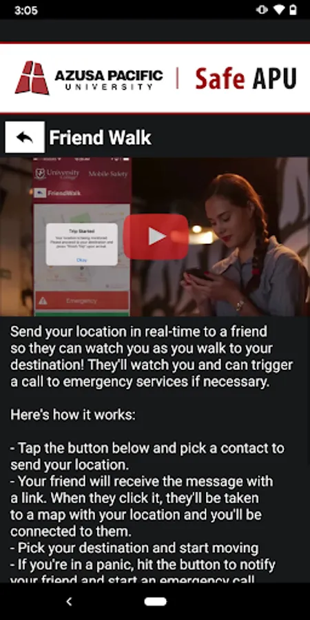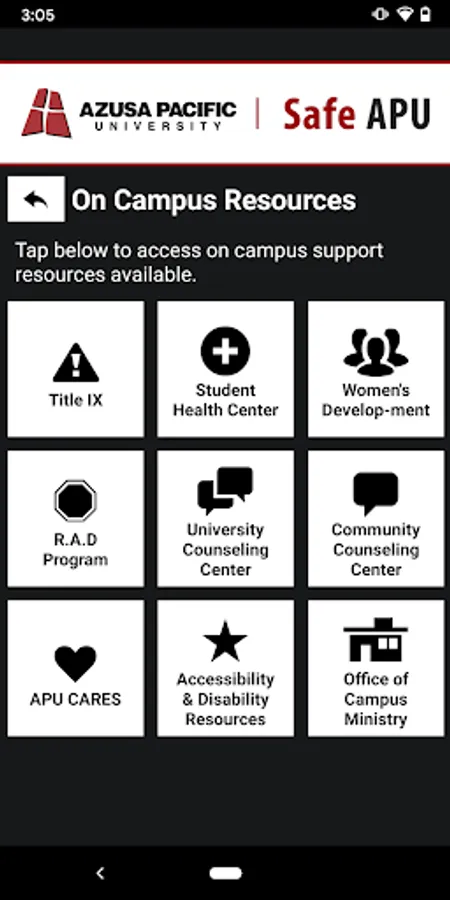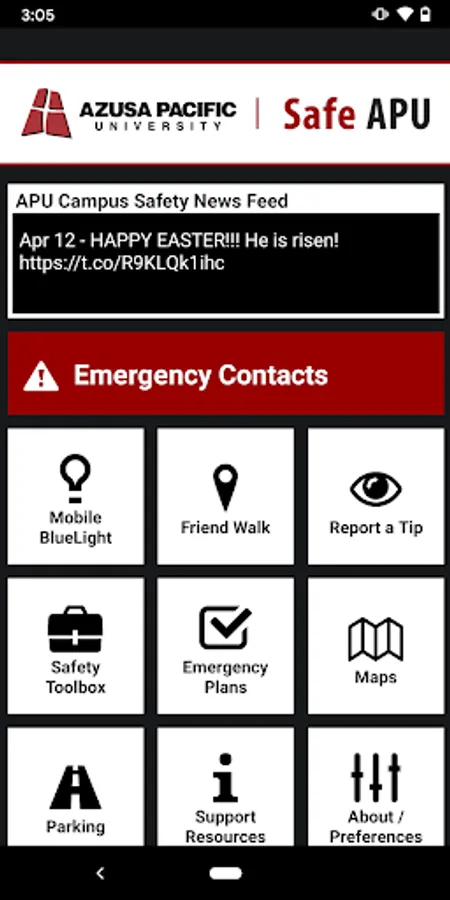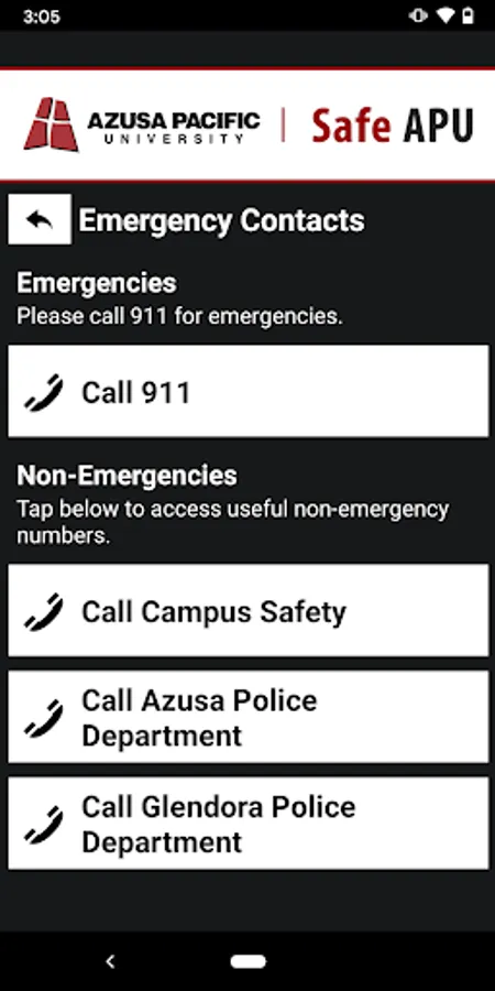 - Safety Notifications: Receive instant notifications and instructions from Azusa Pacific University safety when on-campus emergencies occur.
