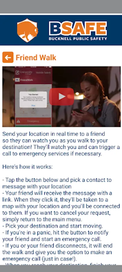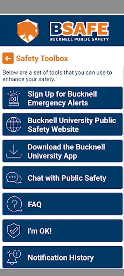 - Safety Notifications: Receive instant notifications and instructions from Bucknell University safety when on-campus emergencies occur.