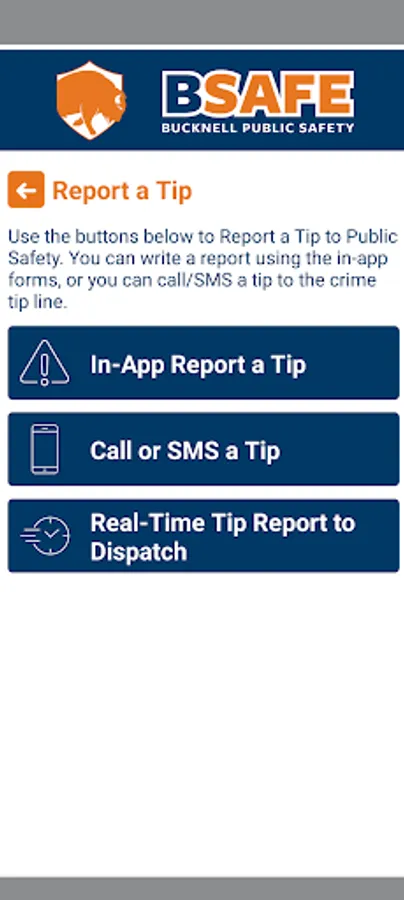 BSAFE is the official safety app of Bucknell University. It is the only app that integrates with Bucknell University's safety and security systems. Campus Police have worked to develop a unique app that provides students, faculty and staff with added safety on the Bucknell University campus. The app will send you important safety alerts and provide instant access to campus safety resources.