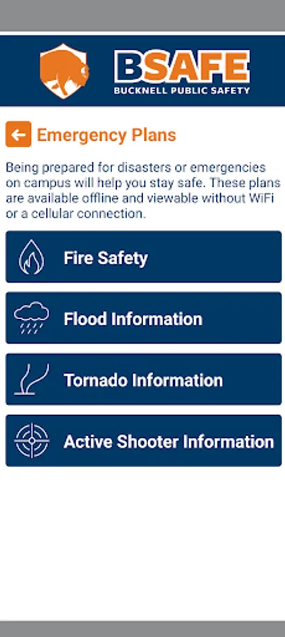- Emergency Plans: Campus emergency documentation that can prepare you for disasters or emergencies. This can be accessed even when users aren’t connected to Wi-Fi or cellular data.