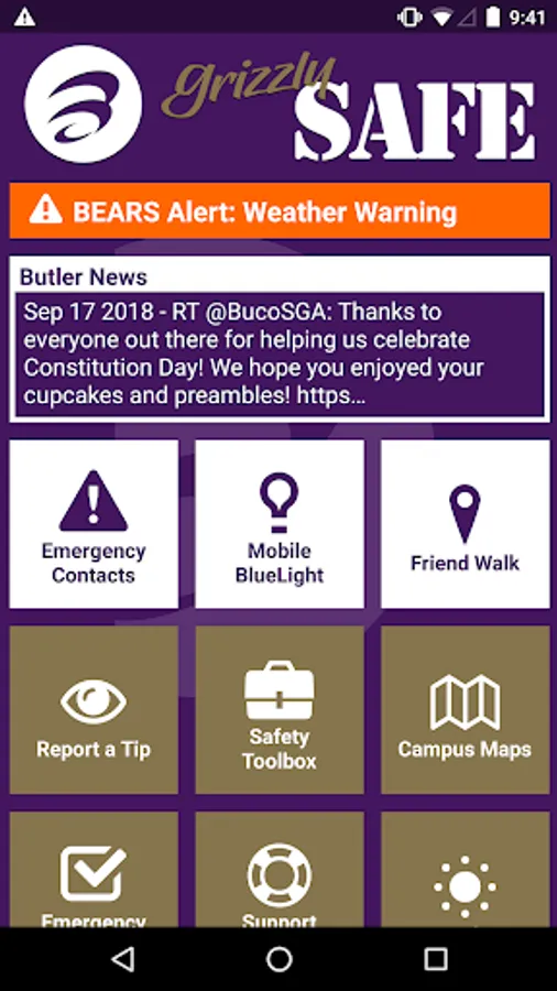 GrizzlySAFE is the official safety app of Butler County Community College. It is the only app that integrates with Butler County Community College's safety and security systems. Public Safety has worked to develop a unique app that provides students, faculty and staff with added safety on the Butler County Community College campus. The app will send you important safety alerts and provide instant access to campus safety resources.