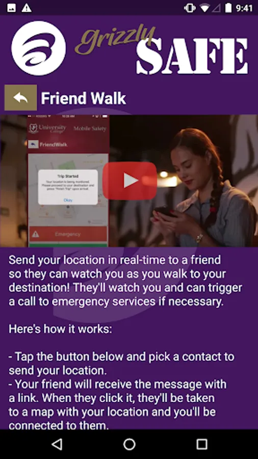 - Friend Walk: Send your location to a friend, who can watch you walk home in real-time.