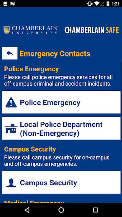 - Emergency Contacts: Contact the correct services for the Chamberlain University area in case of an emergency or a non-emergency concern