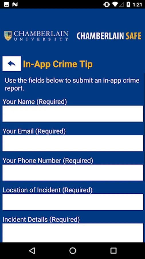 - Tip Reporting: Multiple ways to report a safety/security concern directly to Chamberlain University security.