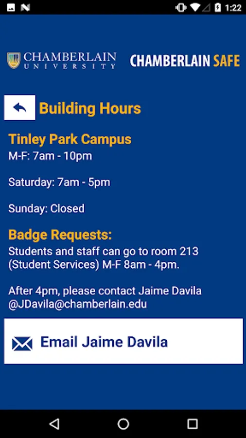 - Safety Notifications: Receive instant notifications and instructions from Chamberlain University safety when on-campus emergencies occur.