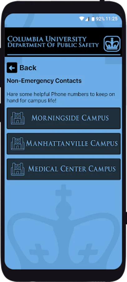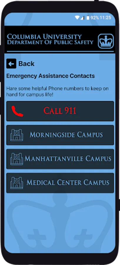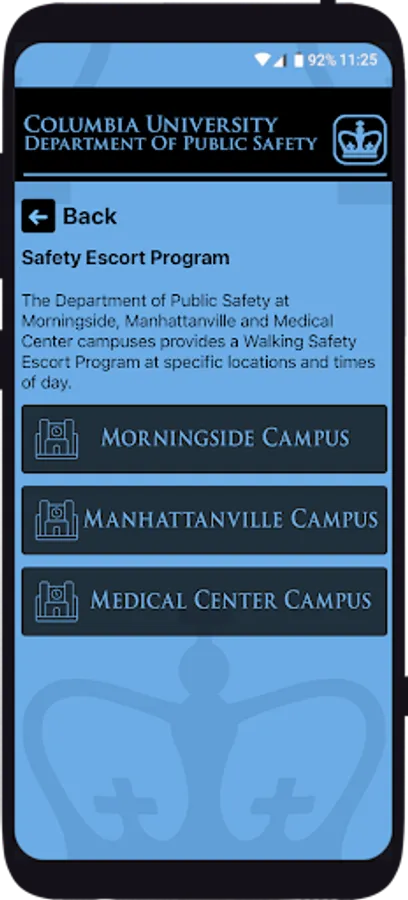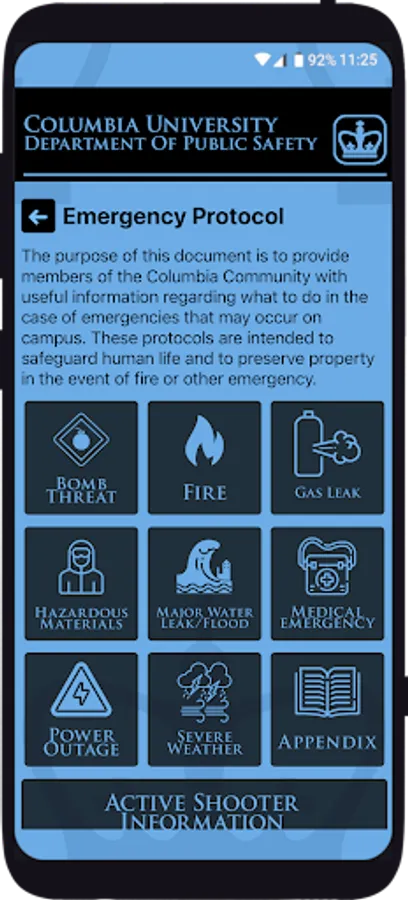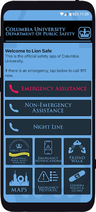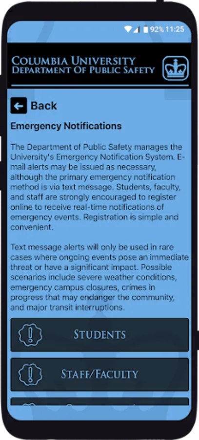 - Safety Notifications: Receive instant notifications and instructions from Columbia University safety when on-campus emergencies occur.