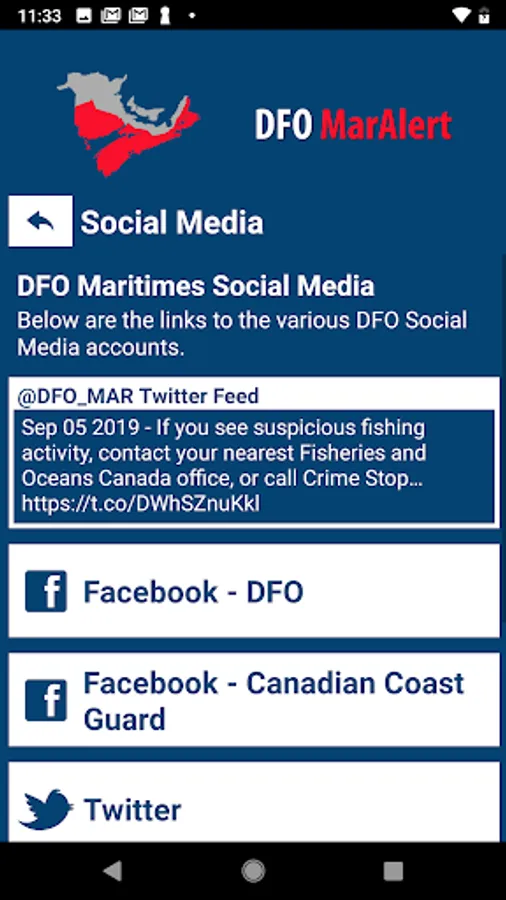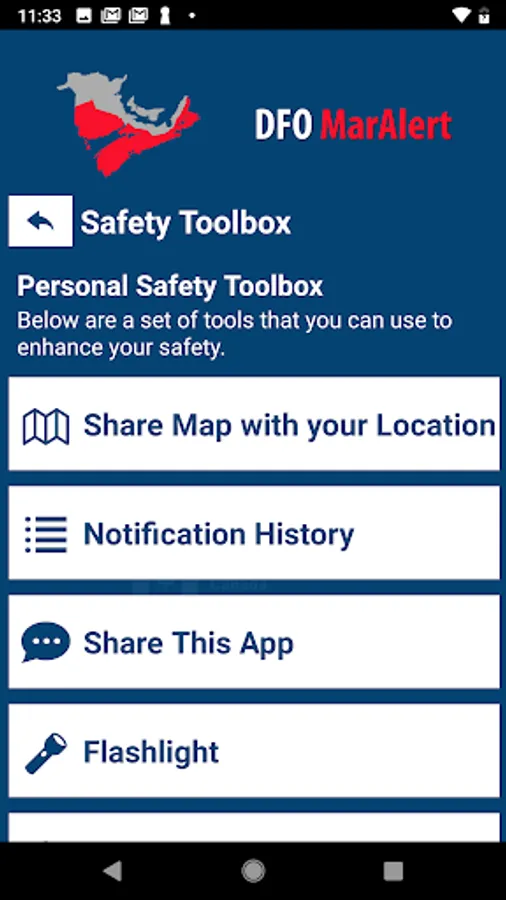 With DFO MarAlert, be quickly alerted to emergency situations that affect Fisheries and Oceans Canada or reach out directly to security services when you need help. Additional features include easy access to safety resources, a safety toolbox, and more.