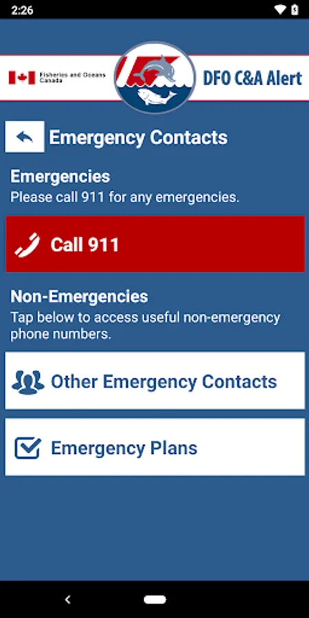 - Emergency Contacts: Contact the correct services for the DFO C&A area in case of an emergency or a non-emergency concern