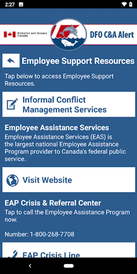 - Support Resources: Access support resources in one convenient app to enjoy a successful experience at DFO C&A.