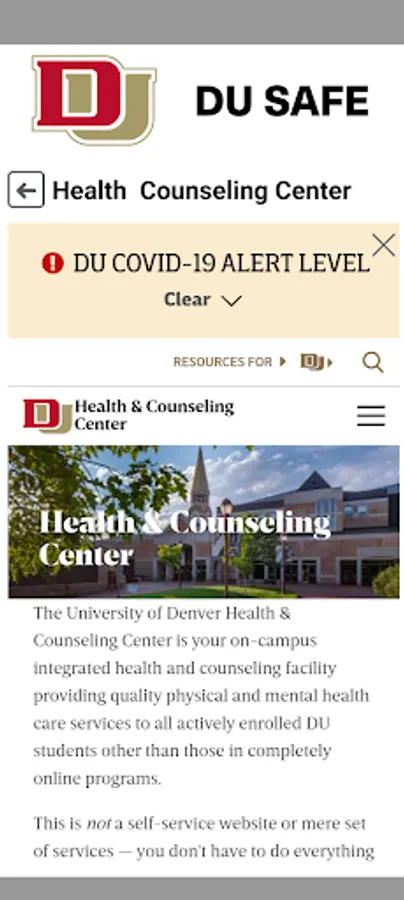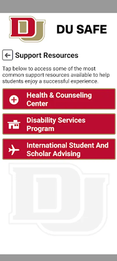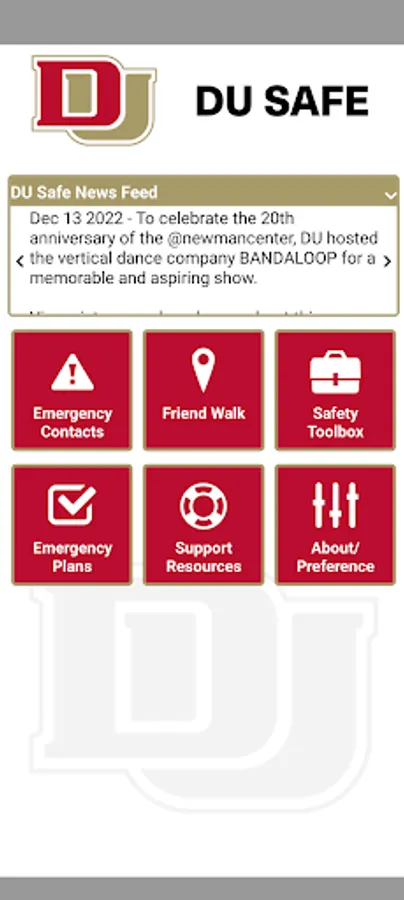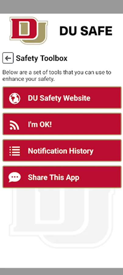DU Safe is an essential tool to enhance your safety at University of Denver. The app will send you important safety alerts and provide instant access to campus safety resources. DU Safe is the official mobile safety app Of University of Denver.