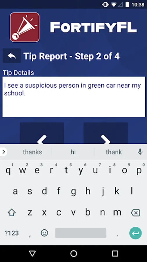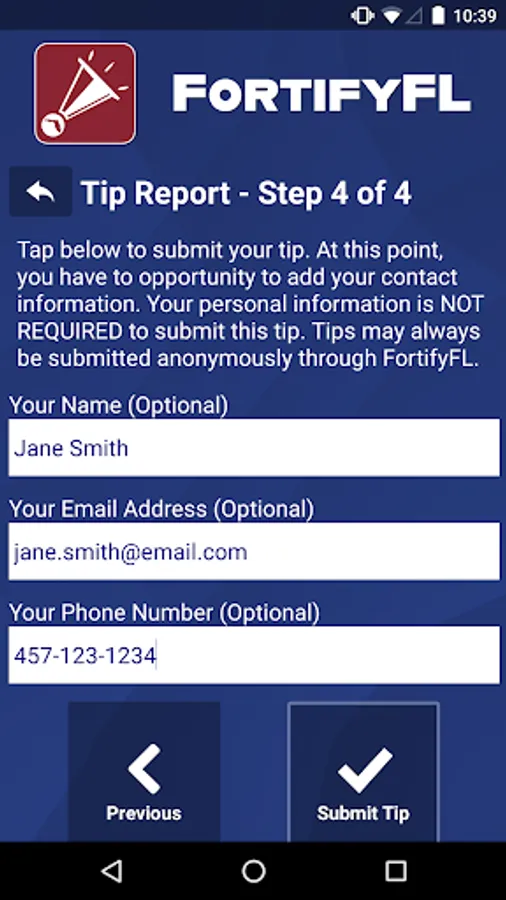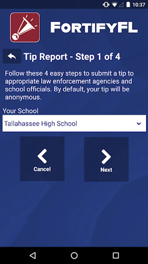 By accessing FortifyFL, students can provide a description of the threat, share pics and videos and submit contact information (if he/she chooses to receive follow-up from law enforcement or school officials). Once information is transmitted via the application, the appropriate law enforcement and school administration entities are instantly contacted and provided with the submitted material.