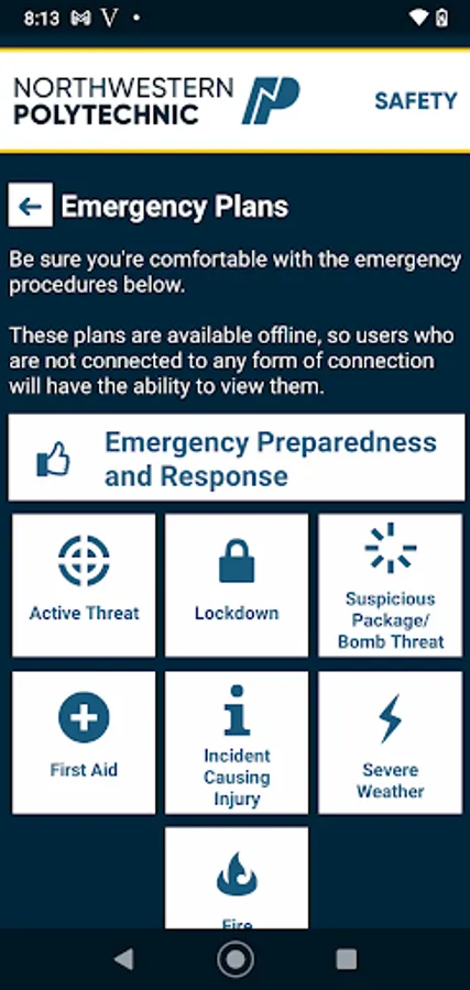 NWP Safety is the official safety app of Northwestern Polytechnic. It is the only app that integrates with NWP's safety and security systems. NWP Security has worked to develop a unique app that provides students, faculty and staff with added safety on the NWP campus. The app will send you important safety alerts and provide instant access to campus safety resources.