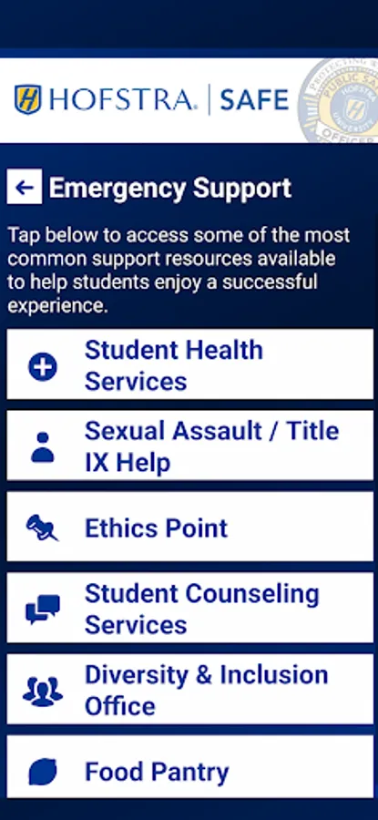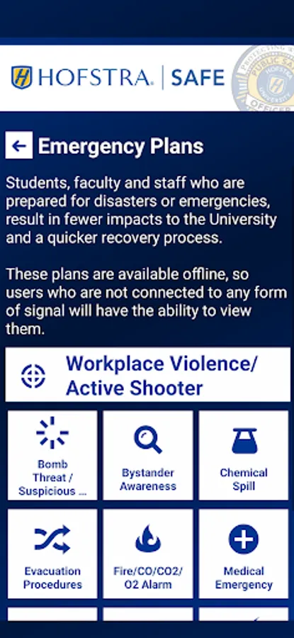 - Emergency Contacts: Access the appropriate Hofstra University contacts in case of an emergency.