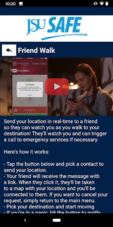 - Panic Button / Mobile Bluelight: Send your location to JSU security in real-time in case of a crisis
