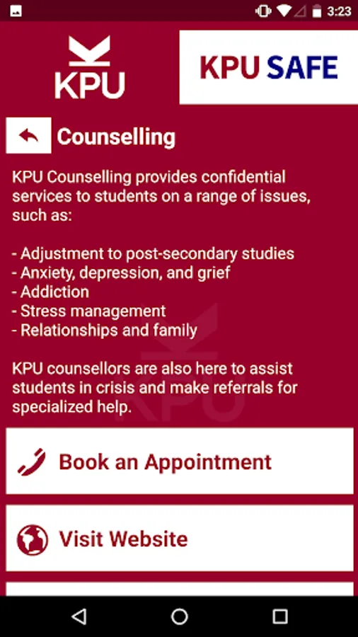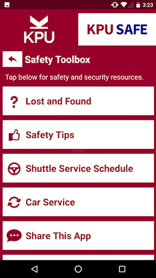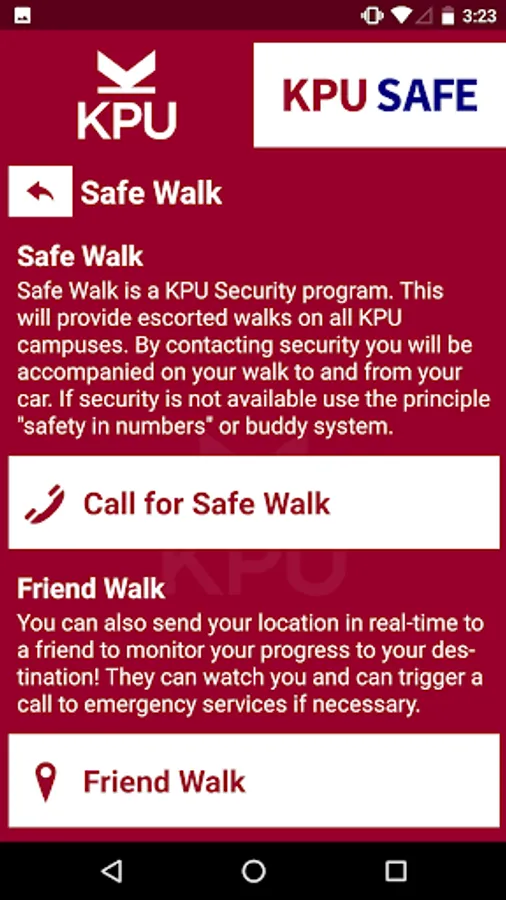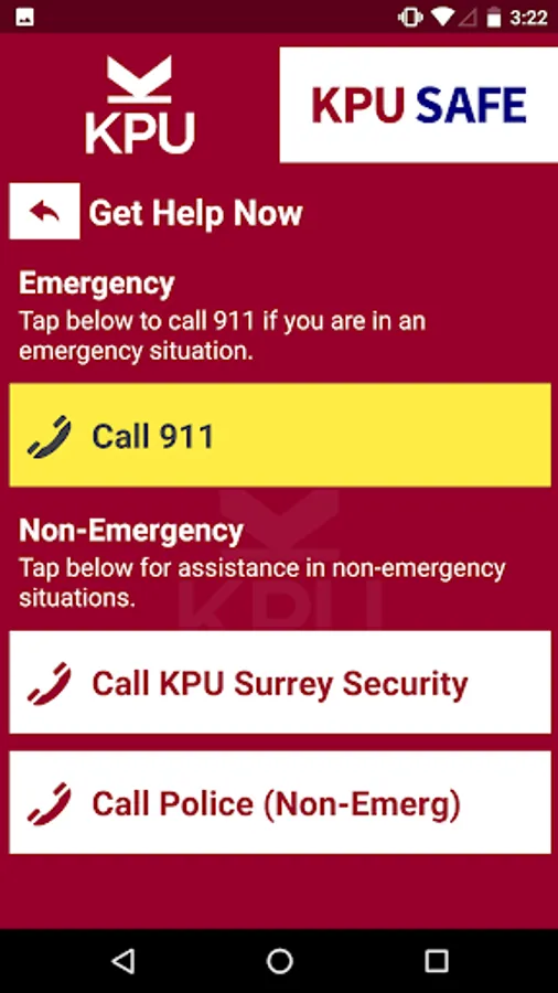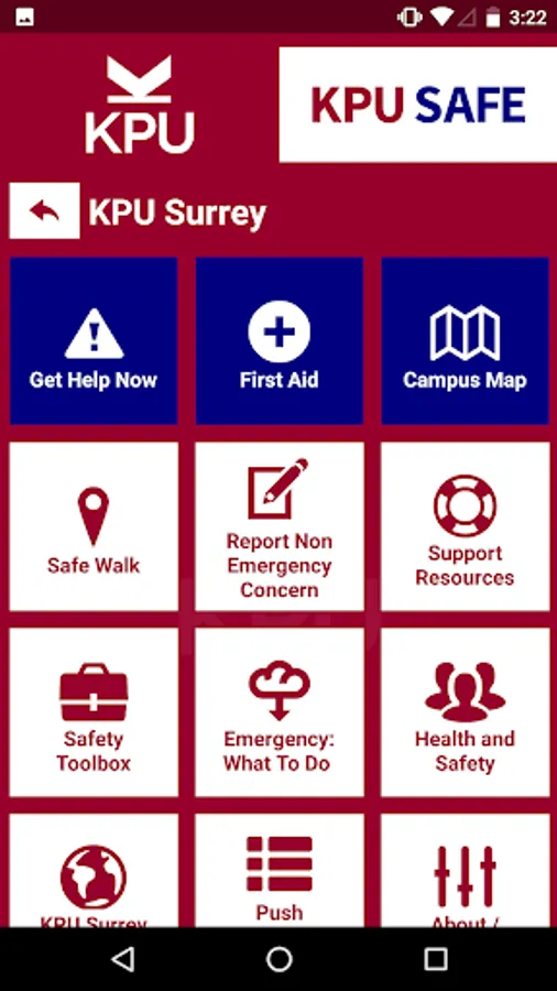 KPUSAFE is the official safety app of Kwantlen Polytechnic University. It is the only app that integrates with KPU's safety and security systems. Campus Security has worked to develop a unique app that provides students, faculty and staff with added safety on the Kwantlen Polytechnic University campuses. The app will send you important safety alerts and provide instant access to campus safety resources.