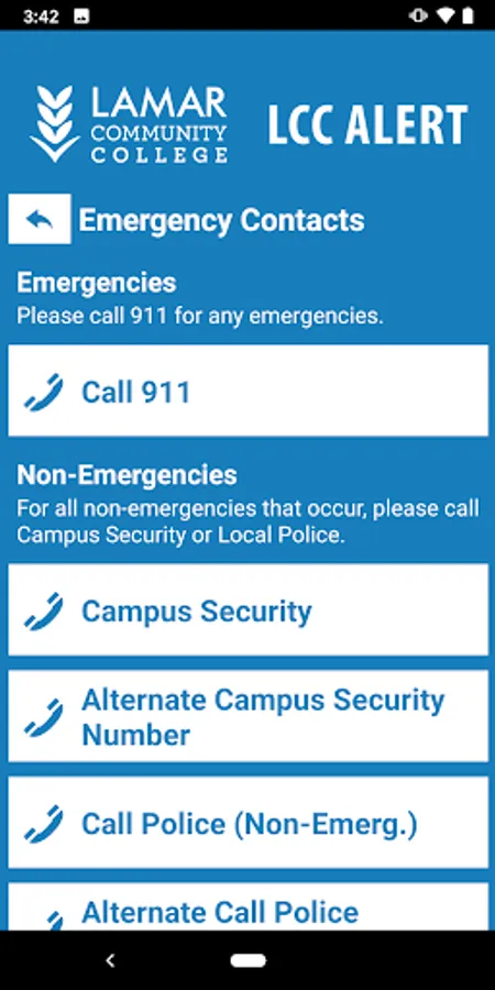 LCC Alert is the official safety app of Lamar Community College. It is the only app that integrates with Lamar Community College's safety and security systems. Campus Security has worked to develop a unique app that provides students, faculty and staff with added safety on the Lamar Community College campus. The app will send you important safety alerts and provide instant access to campus safety resources.