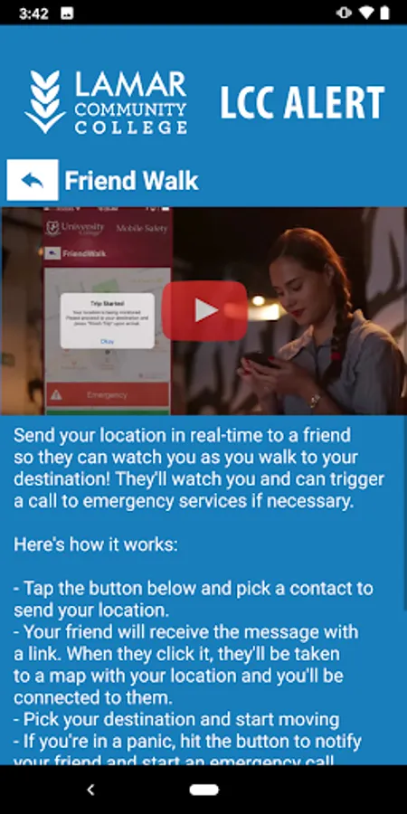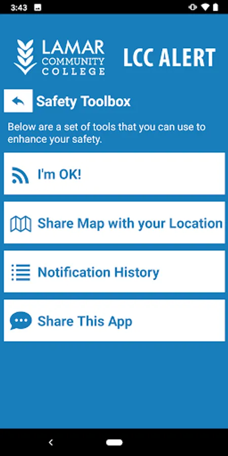 - Safety Notifications: Receive instant notifications and instructions from Lamar Community College when on-campus emergencies occur.