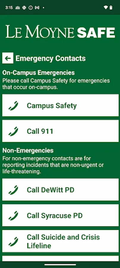 - Emergency Contacts: Contact the correct services for the Le Moyne College area in case of an emergency or a non-emergency concern