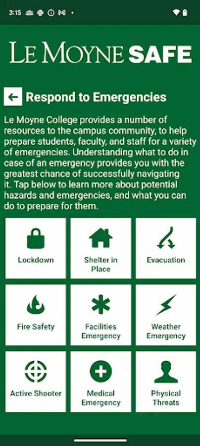 - Safety Notifications: Receive instant notifications and instructions from Le Moyne College safety when on-campus emergencies occur.