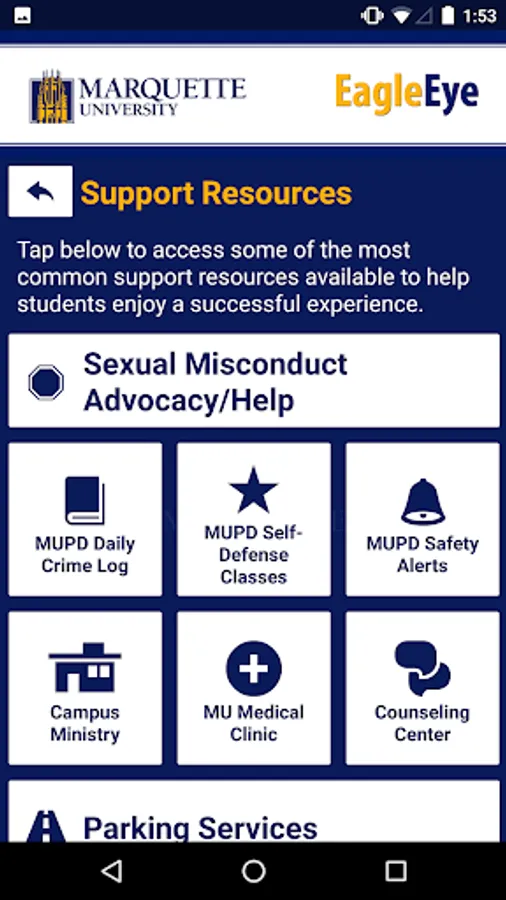 - Mobile Bluelight: Send your location to Marquette University security in real-time in case of a crisis
