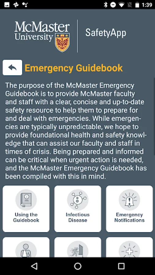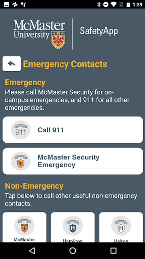 McMaster SafetyApp features include: