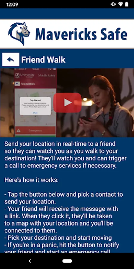 - Friend Walk: Send your location to a friend through email or SMS on your device. Once the friend accepts the Friend Walk request, the user picks their destination and their friend tracks their location in real time; they can keep an eye on them to make sure they make it safely to their destination.