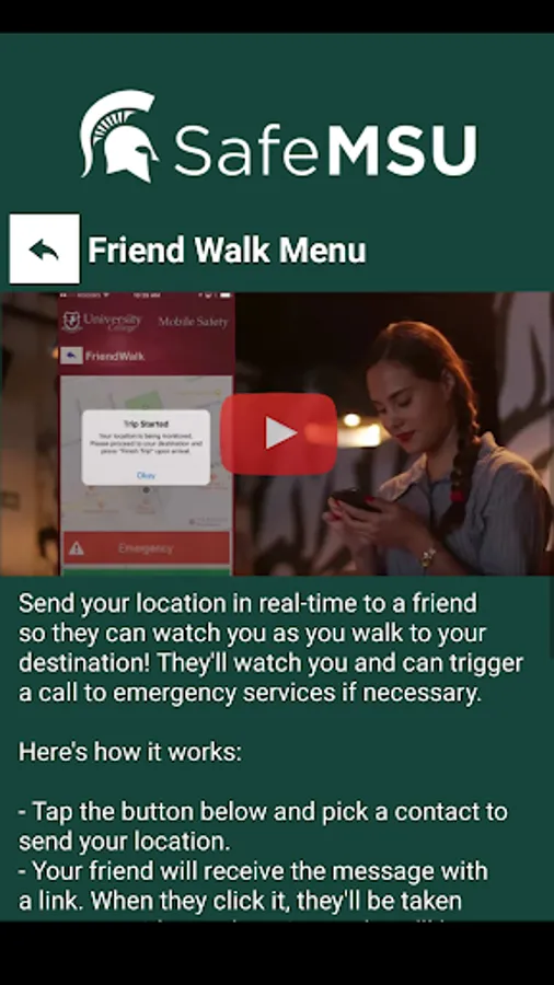 - Safety Notifications: Receive instant notifications and instructions from Michigan State University safety when on-campus emergencies occur.