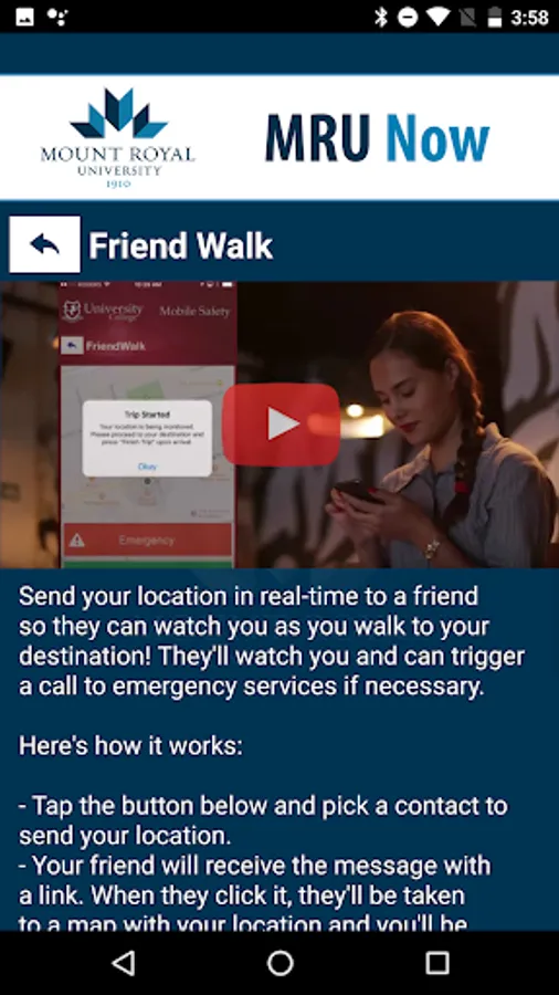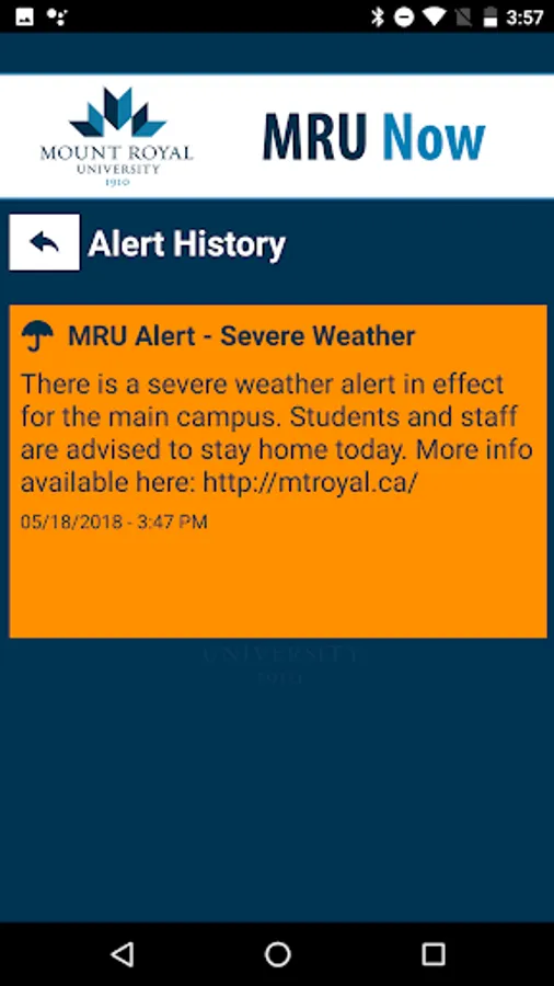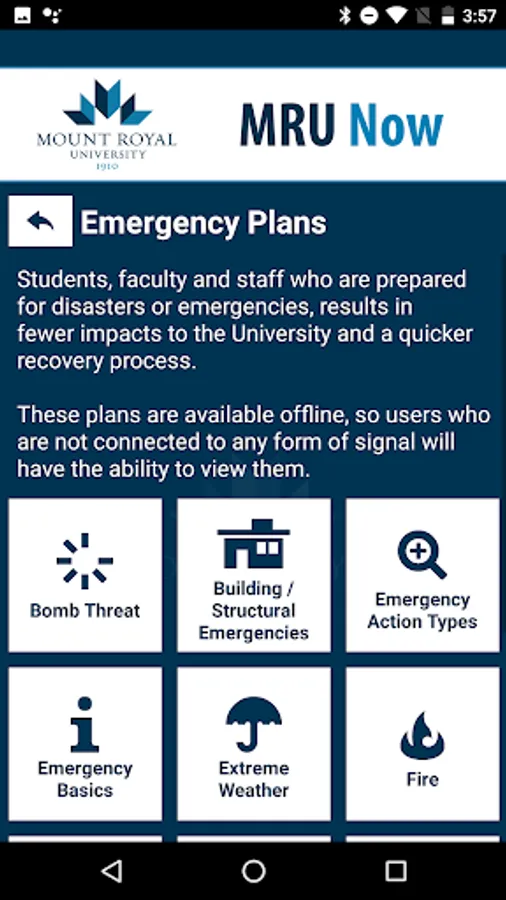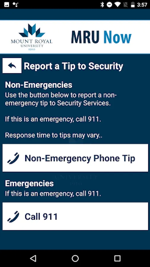 MRU Now is the official safety app of Mount Royal University. The app will send you important safety alerts and provide instant access to campus safety and support resources.