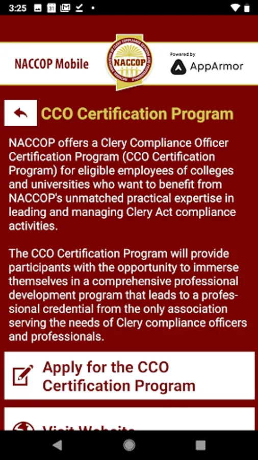 NACCOP Mobile is an essential tool for NACCOP Members! NACCOP Mobile is the Official Mobile App of The National Association of Clery Compliance Officers and Professionals.