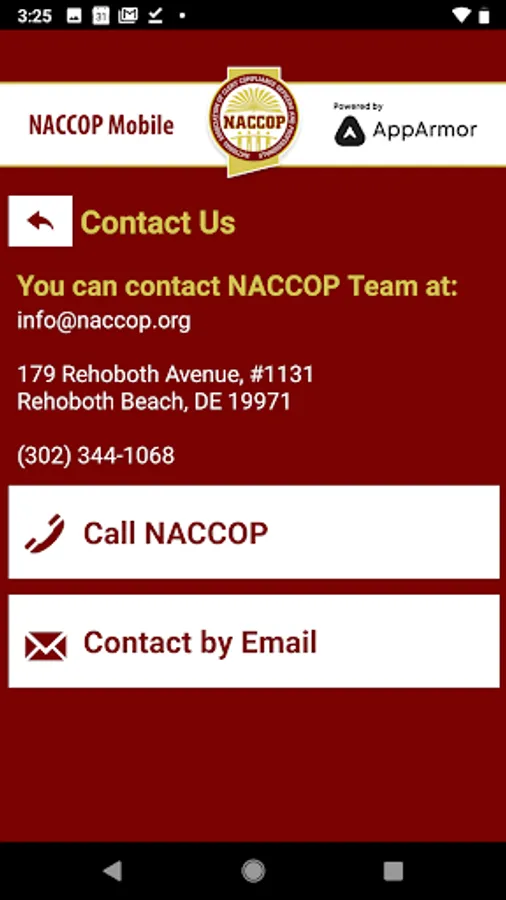 - Contact information for NACCOP.