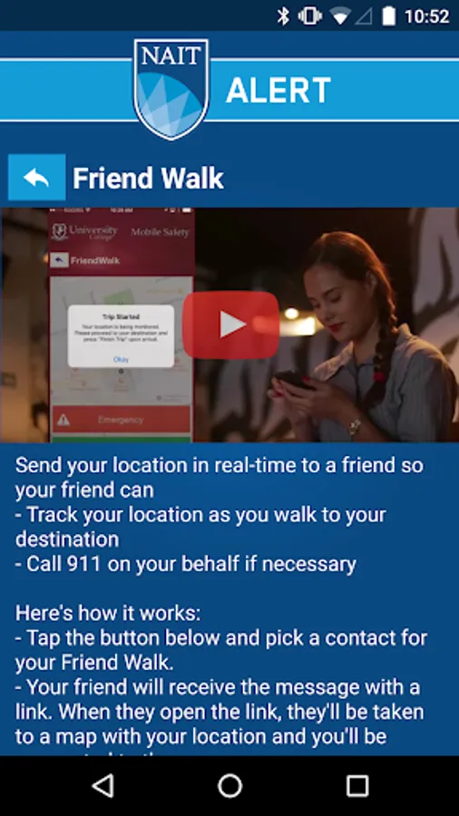 - Mobile Bluelight: Send your location to NAIT security in real-time in case of a crisis