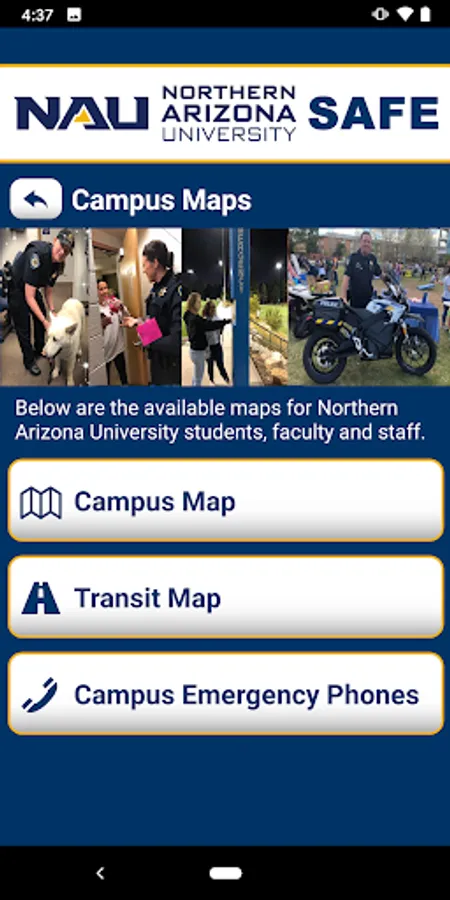 - Safety Notifications: Receive instant notifications and instructions from NAU safety when on-campus emergencies occur.