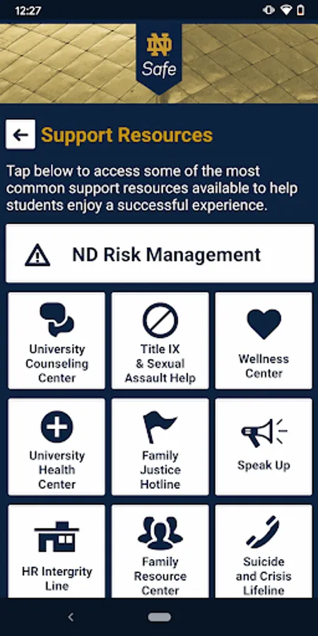 - Support Resources: Access support resources in one convenient app to enjoy a successful experience at University of Notre Dame.