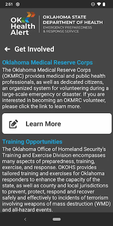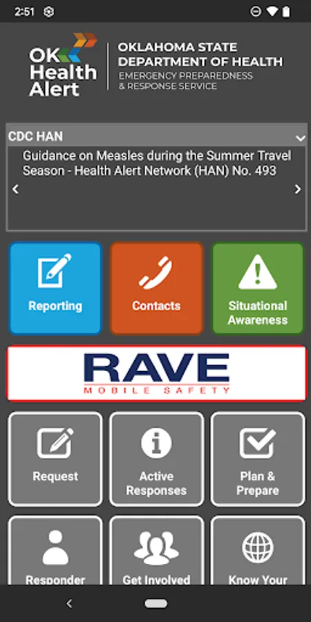 Oklahoma HealthAlert is an innovative application dedicated to strengthening Oklahoma's response to public health emergencies. As a premier emergency management tool, it is pivotal in connecting public health responders with vital resources, facilitating fast and efficient emergency response.