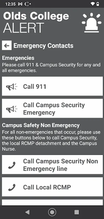 - Emergency Contacts: Contact the correct services for the Olds College area in case of an emergency or a non-emergency concern