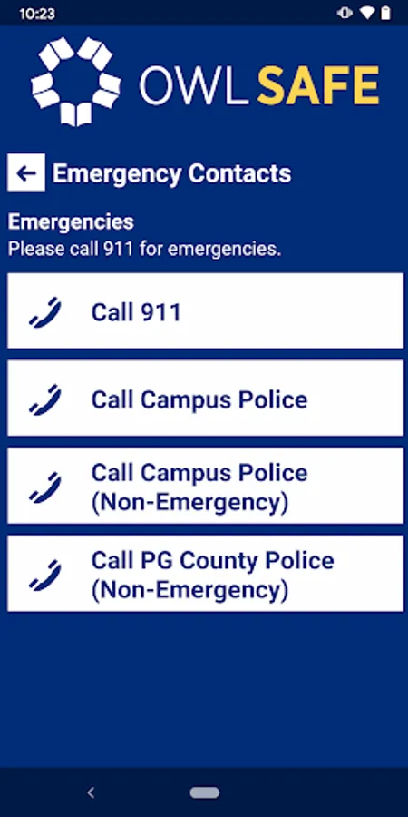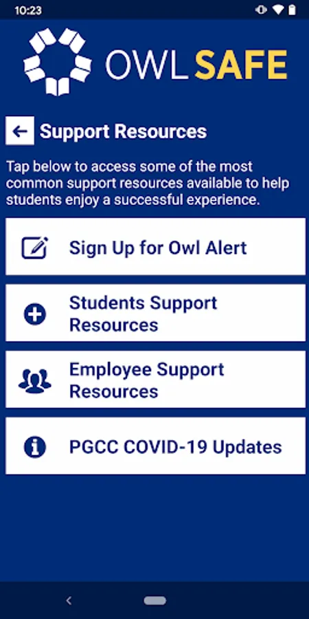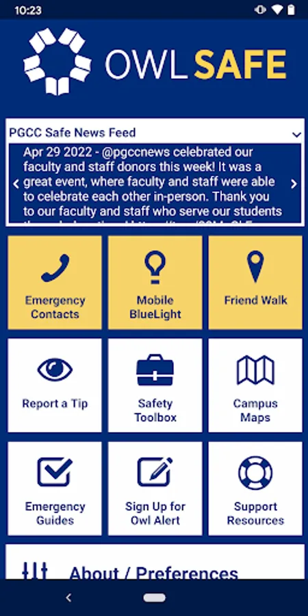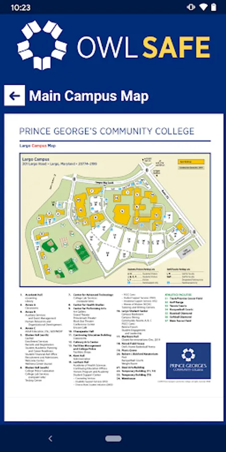 Owl Safe is the official safety app of Prince George's Community College. It is the only app that integrates with Prince George's Community College's safety and security systems. PGCC has worked to develop a unique app that provides students, faculty and staff with added safety on the Prince George's Community College campus. The app will send you important safety alerts and provide instant access to campus safety resources.