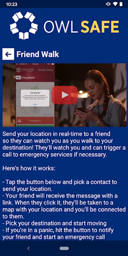- Friend Walk: Send your location to a friend through email or SMS on your device. Once the friend accepts the Friend Walk request, the user picks their destination and their friend tracks their location in real time; they can keep an eye on them to make sure they make it safely to their destination.