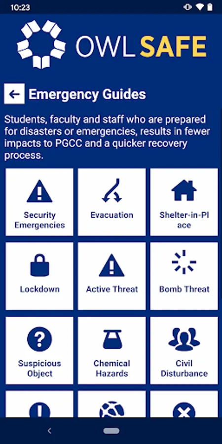 - Emergency Guides: Campus emergency documentation that can prepare you for disasters or emergencies. This can be accessed even when users aren’t connected to Wi-Fi or cellular data.