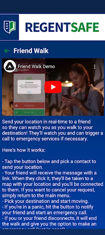 - Friend Walk: Send your location to a friend through email or SMS on your device. Once the friend accepts the Friend Walk request, the user picks their destination and their friend tracks their location in real time; they can keep an eye on them to make sure they make it safely to their destination.