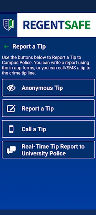 - Tip Reporting: Multiple ways to report a safety/security concern directly to Regent University security.