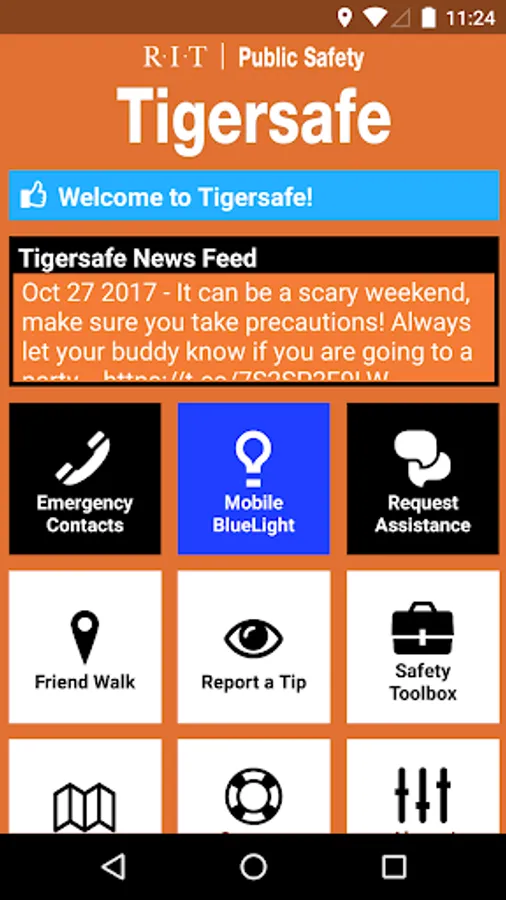 Tigersafe is the official safety app of Rochester Institute of Technology. It is the only app that integrates with RIT's safety and security systems. RIT Public Safety has worked to develop a unique app that provides students, faculty and staff with added safety on the RIT campus. The app will send you important safety alerts and provide instant access to campus safety resources.