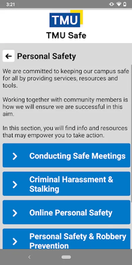 TMU Safe is the official safety app for Toronto Metropolitan University.