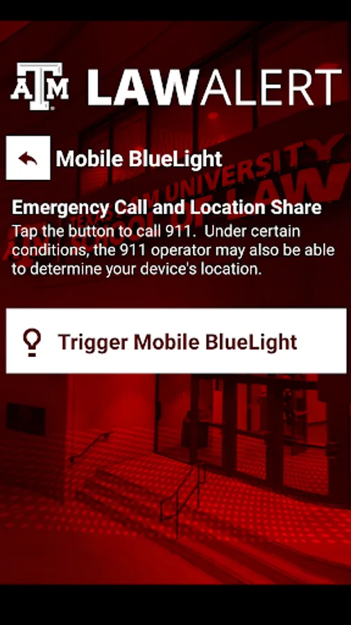 - Mobile Bluelight: Send your location to Texas A&M University School of Law security in real-time in case of a crisis