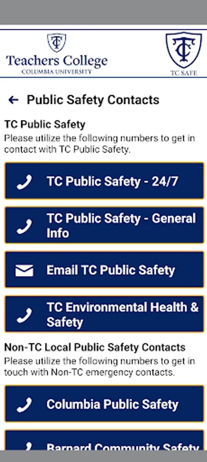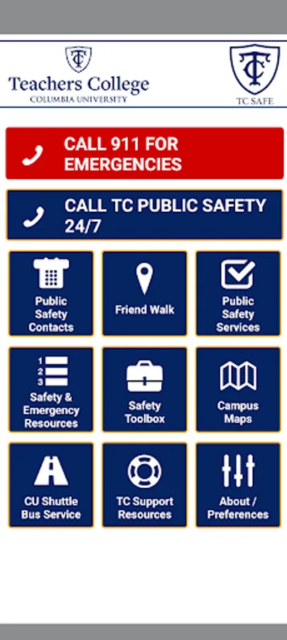 TC Safes the official safety app of Teachers College, Columbia University. It is the only app that integrates with the Teachers College, Columbia University's safety and security systems. TC Public Safety has worked to develop a unique app that provides students, faculty and staff with added safety on the Teachers College, Columbia University campus. The app will send you important safety alerts and provide instant access to campus safety resources.