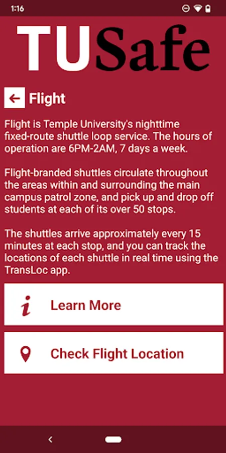- Panic Button : Send your location to Temple University security in real-time in case of a crisis