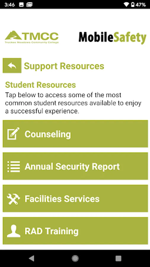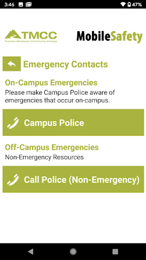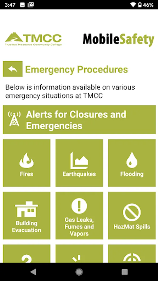 - Safety Notifications: Receive instant notifications and instructions from TMCC Campus Police when on-campus emergencies occur.
