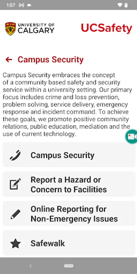 UCSafety is the official safety app of the University of Calgary. It is the only app that integrates with the University of Calgary's safety and security systems. Campus Security has worked to develop a unique app that provides students, faculty and staff with added safety on the University of Calgary campus. The app will send you important safety alerts and provide instant access to campus safety resources.