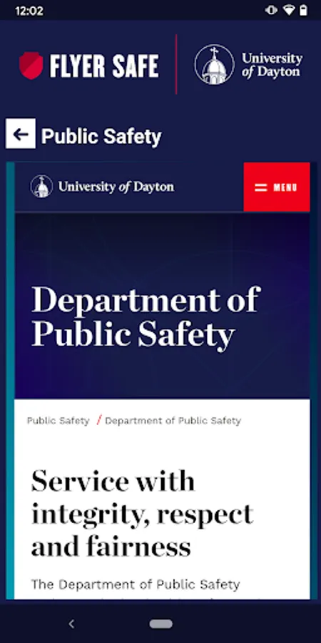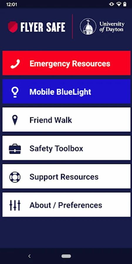 Flyer Safe is the official safety app of the University of Dayton. It is the only app that integrates with the University of Dayton's safety and security systems. The Public Safety Office has worked to develop a unique app that provides students, faculty, and staff with added safety on the University of Dayton campus. The app will send you important safety alerts and provide instant access to campus safety resources.